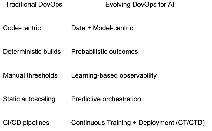 This evolution doesn’t replace DevOps — it extends it. We’re moving from pipelines that deploy code to systems that deploy intelligence.
