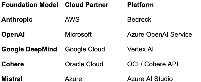 But that’s not what’s happening. Beneath the surface, a new kind of collaboration is forming — one built not on competition but on complementarity. Model developers such as Anthropic, OpenAI, and Cohere aren’t trying to outbuild the clouds; they’re building on them.